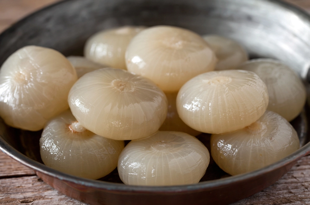 Ингредиенты: 1 кг лука, 1 лавровый лист, 4 горошины чёрного перца, 350 мл воды, 5 ч. л. соли.