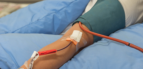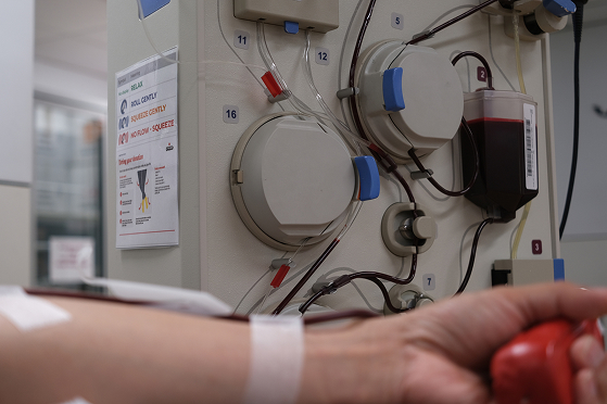 Взятая из одной руки кровь поступает в сепаратор, разделяющий её на компоненты. После этого тромбоциты, эритроциты и лейкоциты, а также очищенная плазма возвращаются в организм пациента.