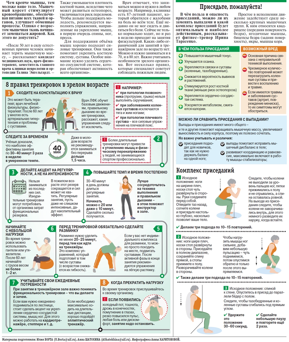 Как правильно заниматься спортом после 60 лет. Инфографика