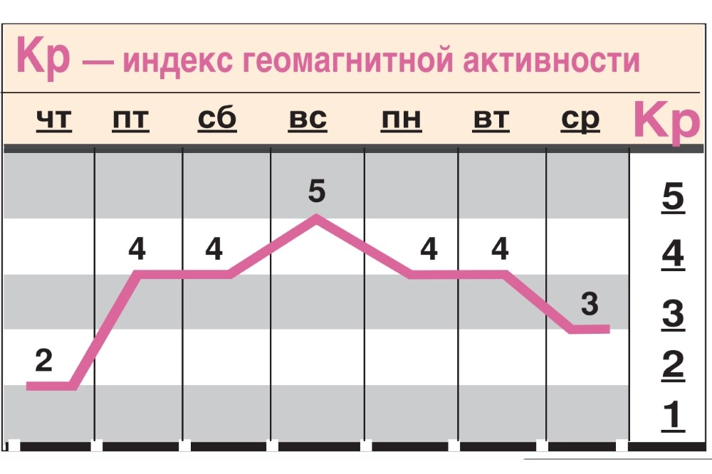 В воскресенье магнитная буря (Кр 5), а два дня до неё и после — магнитосфера возмущённая (Кр 4). При болезнях сердца и сосудов всю неделю надо строго контролировать показатели здоровья и соблюдать назначения врача.
