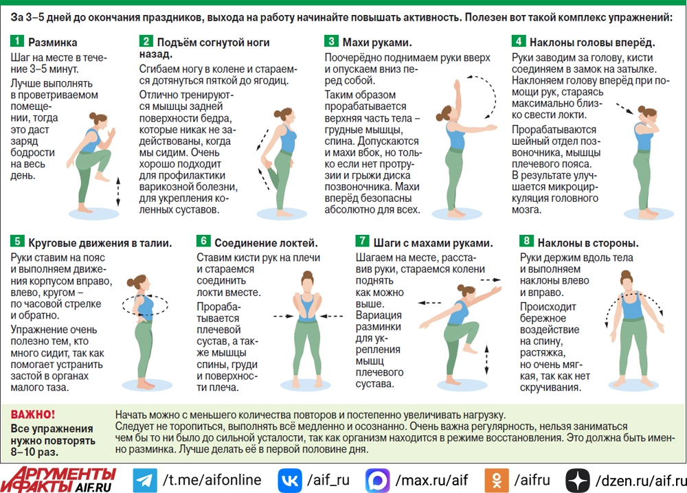Комплекс упражнений для восстановления за каникулы. Инфографика