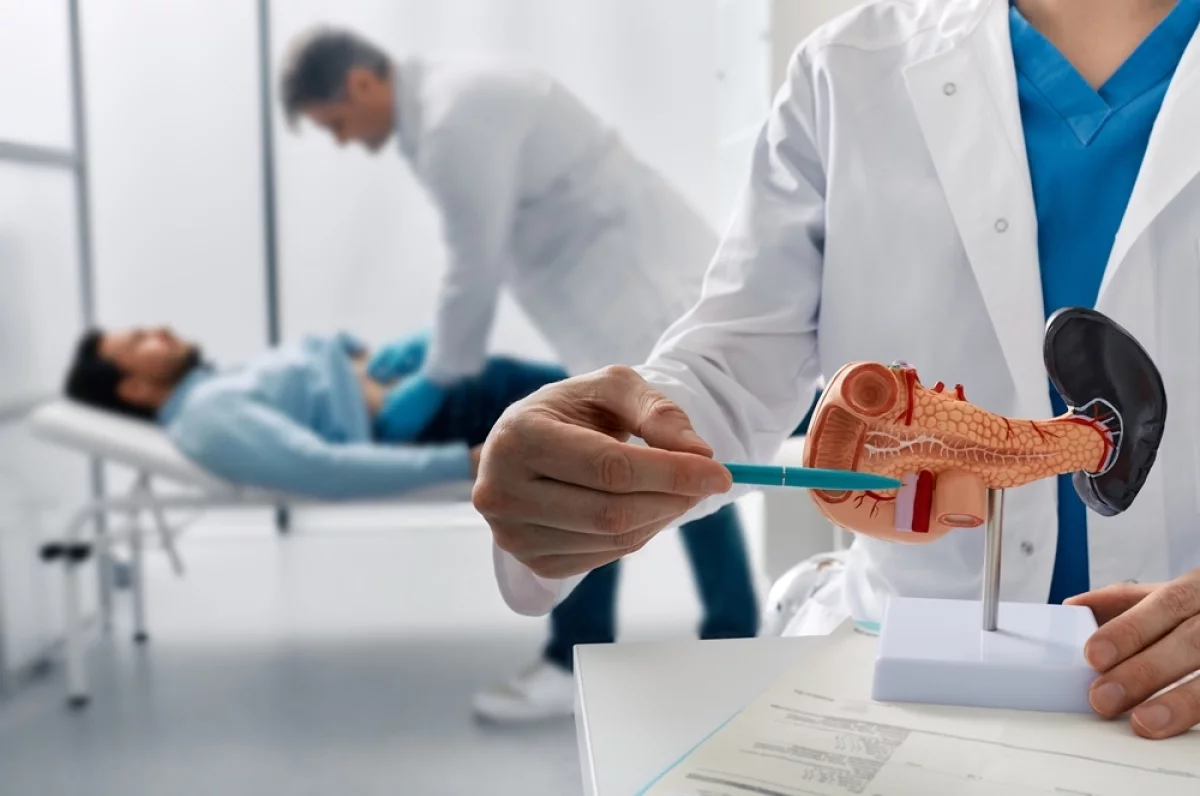 Поджелудочная железа — орган небольшой по размеру, находится она глубоко за желудком и участвует в пищеварении и контроле уровня сахара крови.