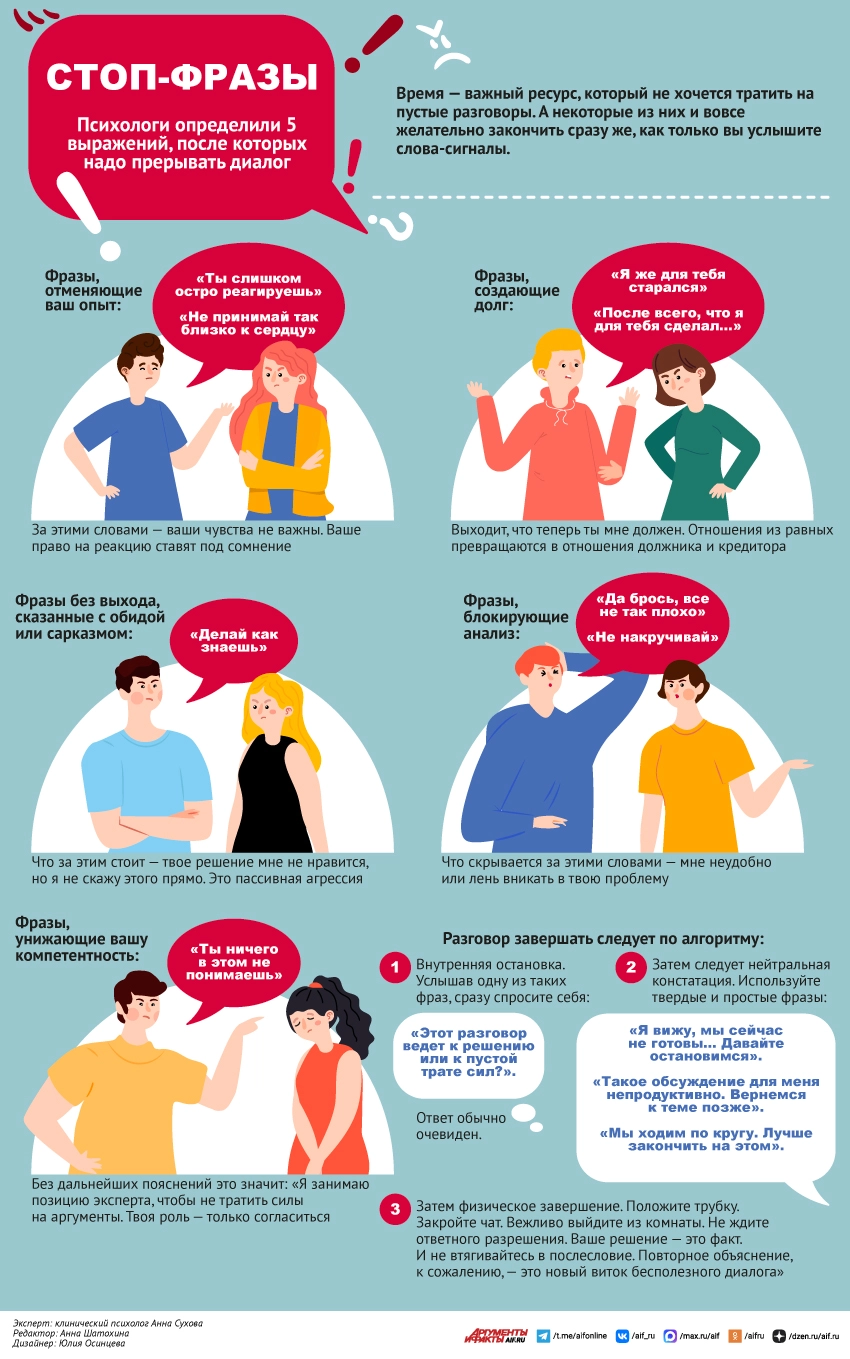 Время -важный ресурс, который не хочется тратить на пустые разговоры. А некоторые из них и вовсе желательно закончить сразу же, как только вы услышите слова-сигналы.