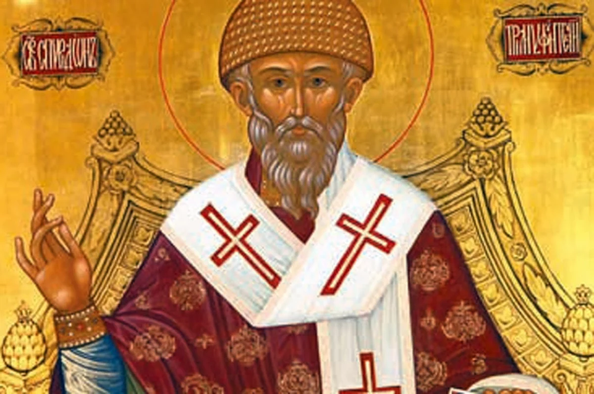 Спиридон родился на острове Кипр в III веке в очень бедной семье. Он с детства был пастухом, вел очень скромный образ жизни, много времени проводил в молитве. Он женился на девушке по имени Ирина. У пары родилась дочь, но вскоре после этого молодая мать скончалась. Эта трагедия не озлобила Спиридона, он растил ребенка, а еще совершал много добрых дел. И ему многие помогали, принимая участие в затеянных им добрых делах. Так он сумел организовать приют для бездомных, кормил на посту стражников. Люди почитали Спиридона, отметил его и Господь, одарив способностью целительства и даром прозрения. Затем Спиридона люди выбрали епископом города, в котором он жил, — Тримифунта. Он и в этом качестве продолжал совершать добрые дела и творить чудеса — по молитве его начинался долгожданный дождь. А как-то Господь наказал грешных жителей города голодом. Один жадный торговец скопил много хлеба в амбарах, однако не только не раздал еду, но даже отказывался продать — ждал, когда цена еще повысится. Тогда по молитве Спиридона ночью пошел дождь, который смыл амбары хлеботорговца. Тот понял, что это наказание, и раздал остатки хлеба бесплатно. Спиридон воскресил новорожденного ребенка язычницы, а потом ее саму — когда она умерла от потрясения. Вылечил умирающего императора. Немало чудес совершил Спиридон. Но главное, чем он отличался — всепрощением. Он обличал грешников с любовью, предвидел грехи и не давал им совершиться. Также он боролся с ересями и был настолько красноречив и убедителен, что побеждал врагов словом. Спиридон предчувствовал свою кончину и принял ее с радостью, в молитве. Сейчас его мощи хранятся на острове Корфу, в соборе святого Спиридона. В день его смерти здесь происходят большие праздненства.