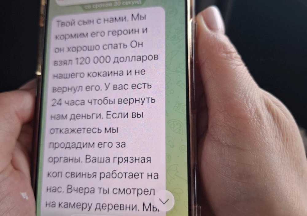 «Твой сын с нами. Мы кормим его героином, и он хорошо спит. Он взял на 120 тысяч долларов нашего кокаина и не вернул его. У вас есть 24 часа, чтобы вернуть нам деньги. Если вы откажетесь, мы продадим его на органы», — писали похитители.