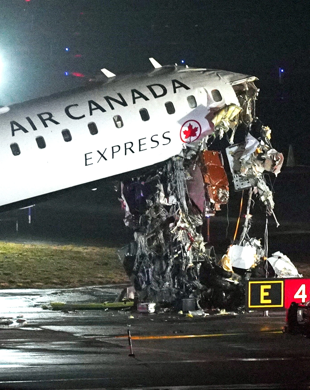 Судя по фотографиям из аэропорта, которые распространили американские СМИ, у CRJ-900 фактически полностью разрушена кабина. Автомобиль пожарной службы был опрокинут набок.
