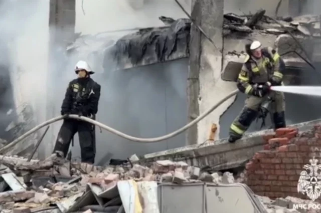 После детонации начался пожар, площадь которого, по данным МЧС, составила от 650 до 750 квадратных метров. Также произошло частичное обрушение здания — до 800 квадратных метров.