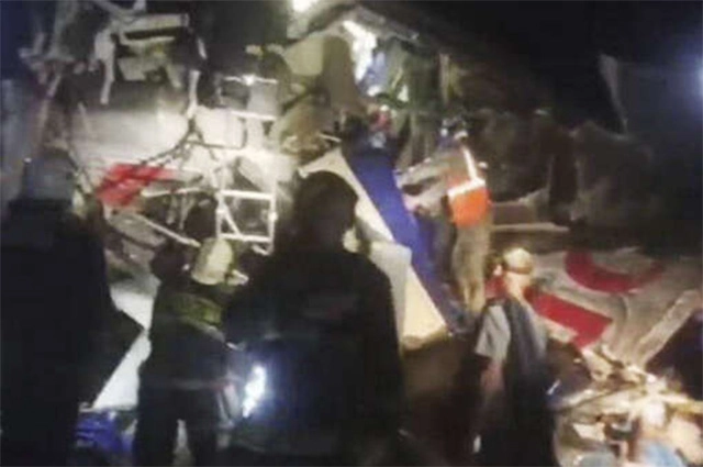 Обновлено в 2:05. Всех пассажиров сейчас осматривают на месте и отправляют в пункты временного размещения на автобусах. Сотрудники МЧС обследуют пострадавшие вагоны и локомотив поезда. К ликвидации последствий привлечены более 180 специалистов и 60 единиц техники.