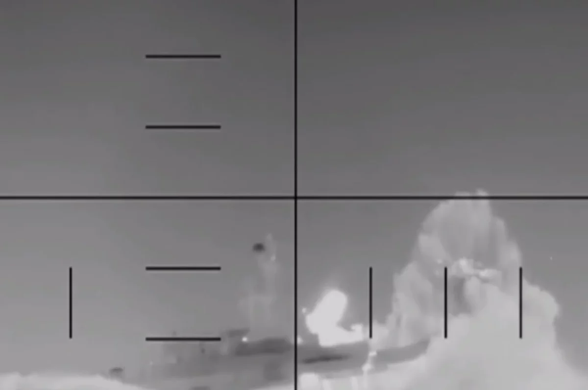 На кадрах, которые ведомство разместило в соцсети Х*, показан мощный удар по части судна, в результате которого оно накренилось и начало идти ко дну.
