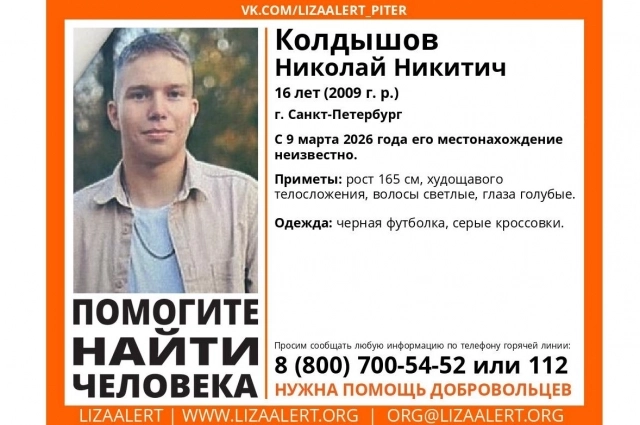 Николай исчез 9 марта в Бокситогорске. По ориентировке поисковиков, его рост около 165 сантиметров, он худощавого телосложения, со светлыми волосами и голубыми глазами.