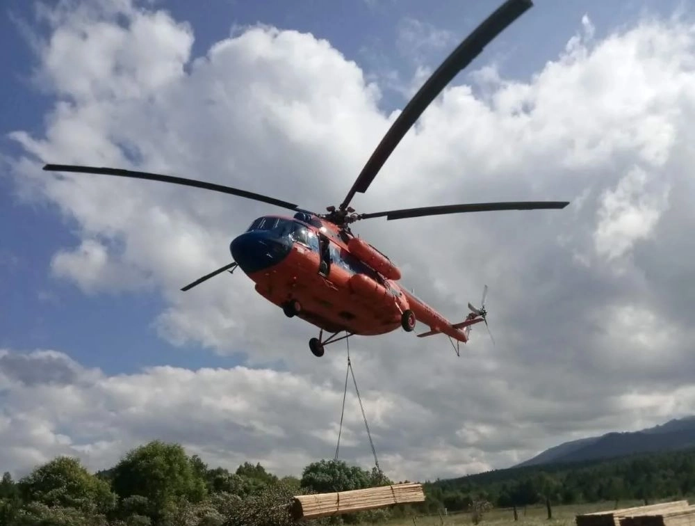 Кстати, на своей странице в соцсети Виктор К. опубликовал фотографию вертолёта, который поднимал груз. Он другой — красного цвета и намного больше. Где это снято, неизвестно, но, скорее всего, в Кутурчине. Возможно, что на вертолетной площадке у Виктора приземляется не только машина его друга Басмана.