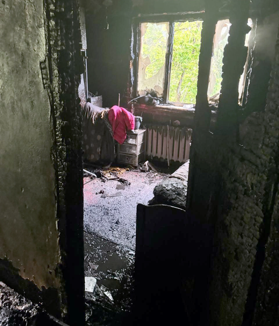 Жилье полностью уничтожено. Выпали оконные рамы, сгорели все двери и перегородки. Испорчены мебель, обои, личные вещи. На фото, которое опубликовала подмосковная прокуратура, видно, что среди чёрных стен сохранилась лишь одна розовая детская курточка.