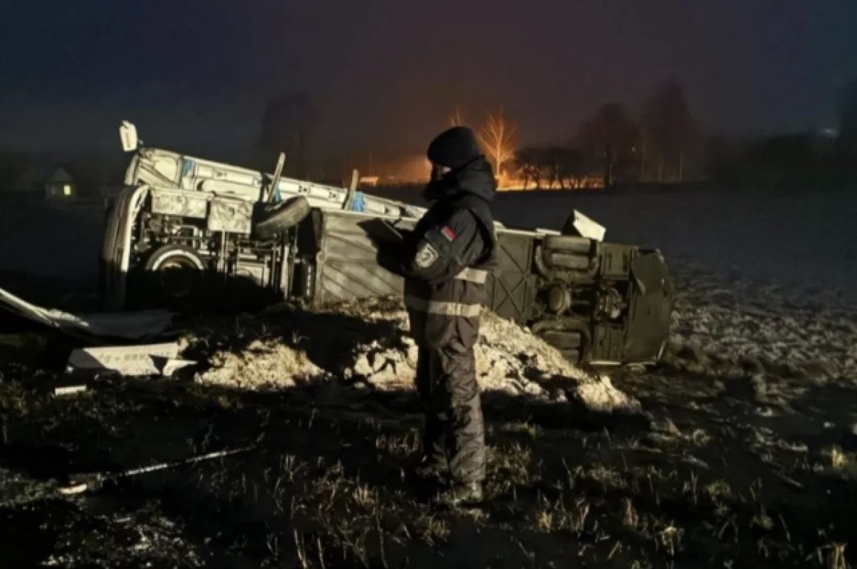 Инцидент произошел 27 декабря около 02:40 на трассе М1 в Толочинском районе Витебской области. Пассажирский автобус, следовавший по маршруту «Брест – Москва» съехал в кювет и перевернулся.