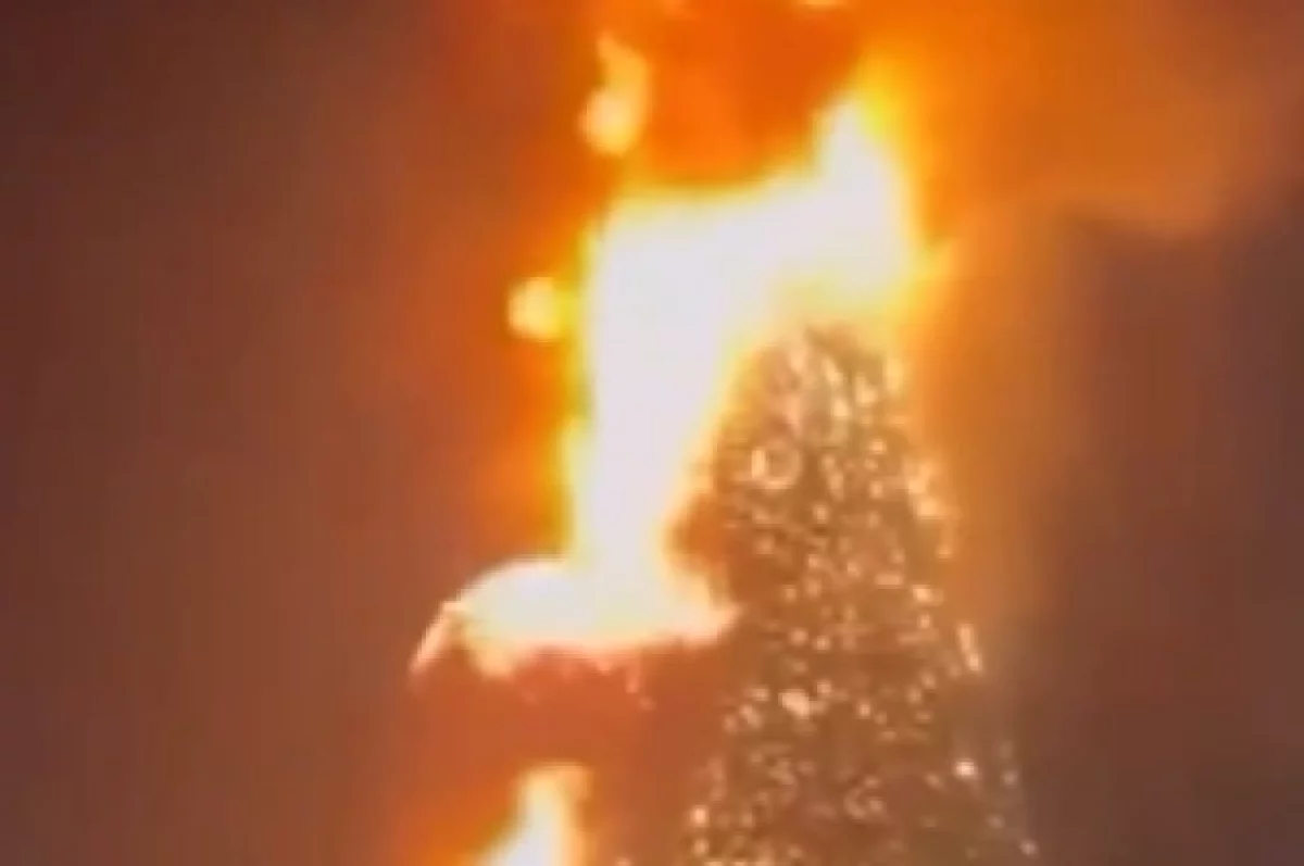В грузинском городе Гардабани во время праздничного включения огней загорелась новогодняя ёлка. В соцсетях распространились кадры с места происшествия.