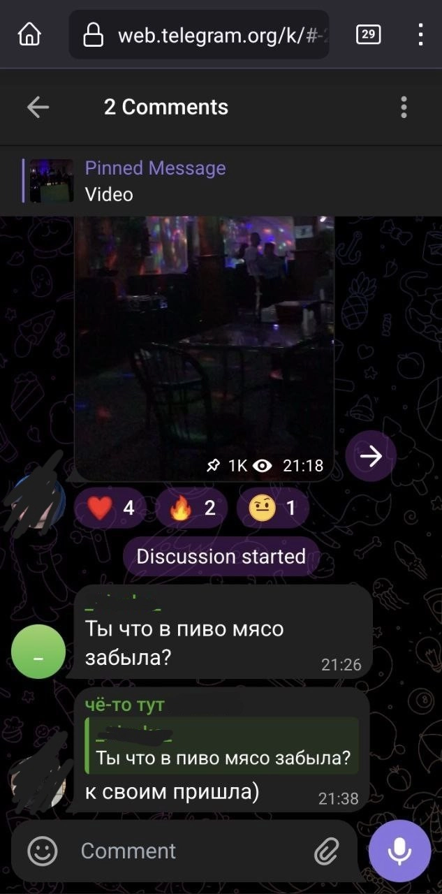 Подруга Надежды в своем Telegram-канале, который она позже удалила из-за происшествия, публиковала посты из «Пиво. Мясо», отвечая в комментариях, что пришла «к своим».