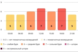Прогноз магнитных бурь по часам на 9 декабря 2025 года. Инфографика