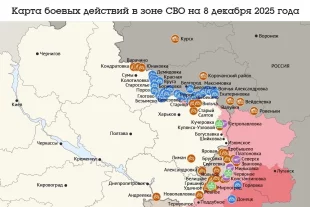 Карта боевых действий в зоне СВО на 8 декабря 2025 года
