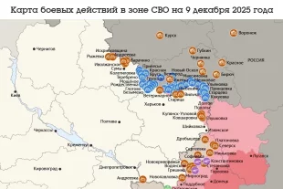 Карта боевых действий в зоне СВО на 9 декабря 2025 года