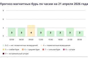 Прогноз магнитных бурь по часам на 21 апреля 2026 года. Инфографика