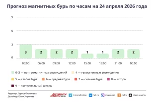 Смотрите в инфографике aif.ru, как будет меняться геомагнитная обстановка в течение дня 24 апреля 2026 года.