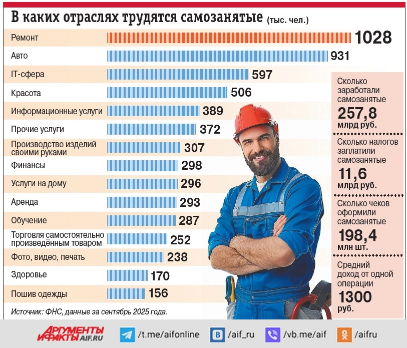 «Обеление» самозанятости (всяких разных репетиторов и прочих фрилансеров.) в прошлом году принесло в бюджет 99,8 млрд рублей (притом что численность зарегистрированных была ниже — 12,2 миллиона человек). С бюджетом сейчас ситуация напряженная, государство ищет новые источники его пополнения. По данным Минфина, в 2025 году федеральный бюджет недополучит около 5,7 трлн рублей. В 2026-м дефицит планируется в размере 3,786 трлн рублей (1,6 % ВВП, что, кстати, по меркам многих развитых стран весьма скромно, даже в ЕС нормой считается дефицит до 3 % ВВП, а, скажем, у Франции он уже под 6 %). При этом, по данным министра финансов Антона Силуанова, в 2026 году дополнительные налоговые меры (такие, как повышение НДС с 20 до 22 %, например) принесут примерно 2,3 трлн рублей. Сколько принесут дополнительно вышедшие из тени самозанятые, если часть их в ответ на усиление фискальной нагрузки наверняка уйдет обратно в тень, — вопрос открытый.