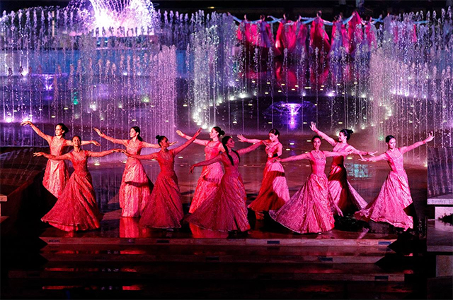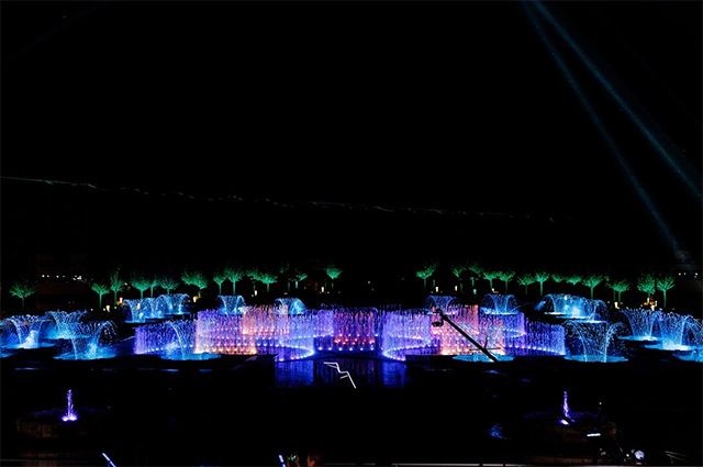 Интерактивный фонтан выпускает в небо 2214 струй высотой от одного до 30 метров. Он может работать в статическом или одном из пяти динамических режимов, включает девять чаш и располагается на двух ярусах. Объект оснащён 1368 световыми прожекторами с индивидуальным управлением, двумя видеопроекторами для проецирования изображений и мощной акустической системой с качественным звуком.