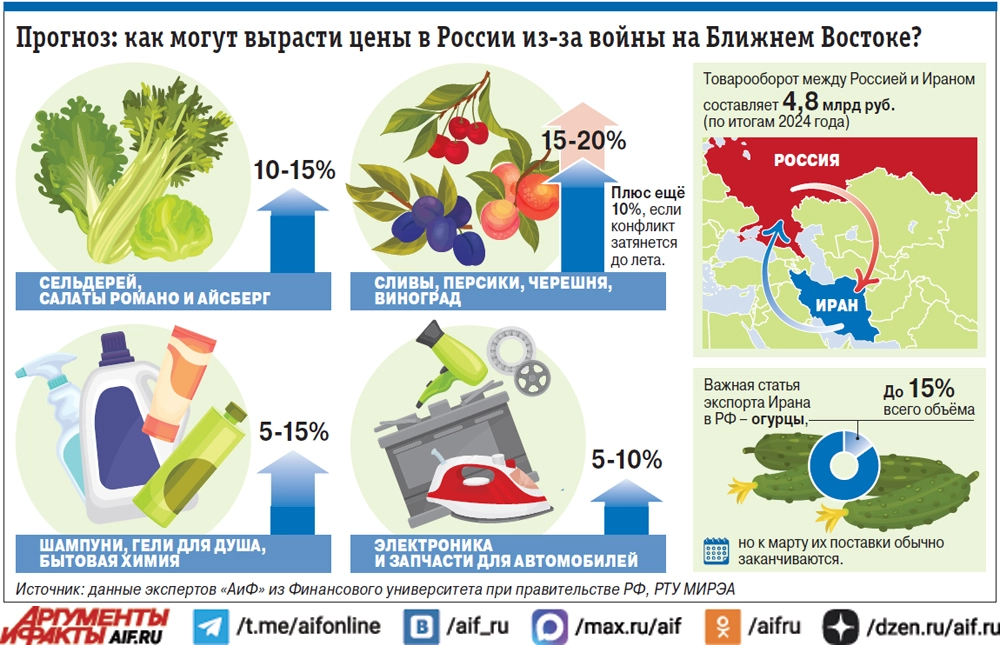 А между тем весь мир напряжённо следит, как ползут вверх цены на нефть и топливо из-за войны в Иране. О том, как конфликт скажется на ценах овощей, фруктов, гаджетов и даже бытовой химии в наших магазинах, «АиФ» узнал у экспертов.