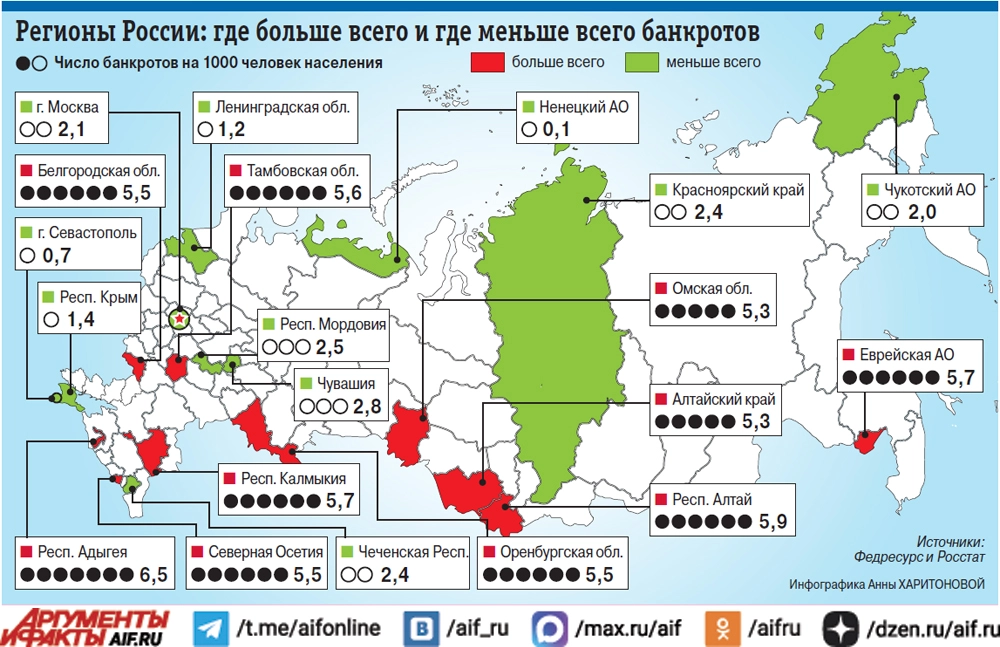 Подсчитано, что по итогам прошлого года 568 тысяч россиян были объявлены банкротами в судебном порядке и еще 61,3 тысячи — во внесудебном, по упрощенной процедуре. Судебных банкротств оказалось почти на треть больше год к году. Причем такие темпы прироста наблюдаются уже не первый год. Таким образом, рост устойчивый (правда, в первые годы действия соответствующего закона ежегодный прирост был еще больше — до 70 %).