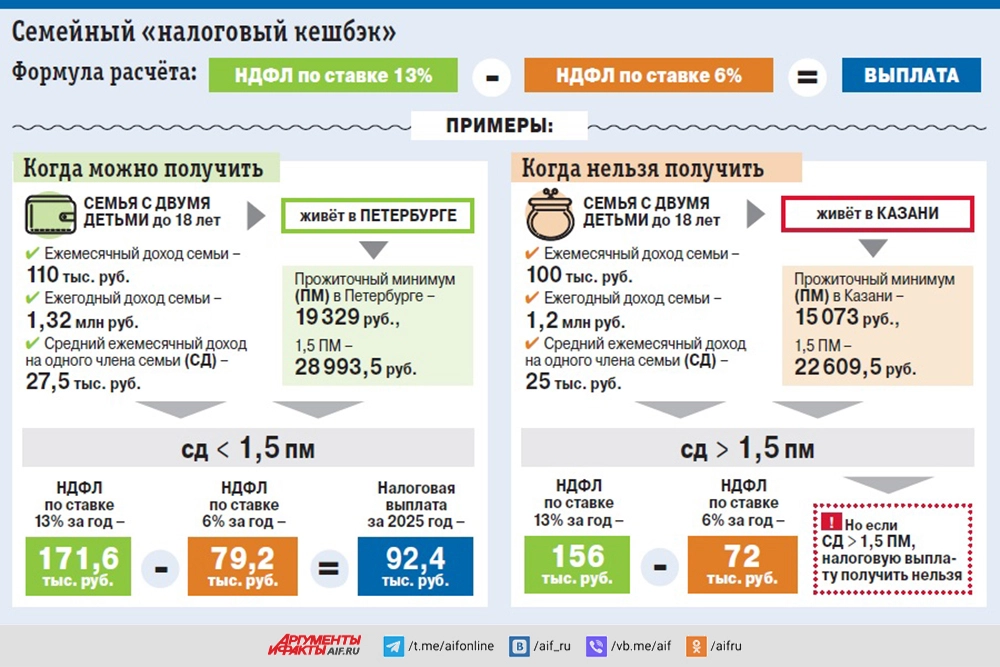 С января родители двоих и более детей смогут возвращать часть НДФЛ за прошедший год — так называемый налоговый кешбэк. Претендовать на него смогут около 4 миллионов российских семей, в которых растут более 10 миллионов детей.