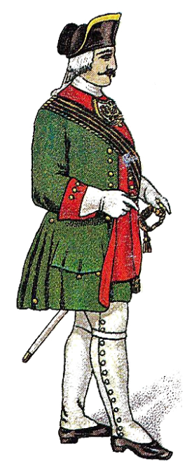 Ответ верный. Пётр I сделал форму обязательной в русской армии, одев служивых людей по образцу западных армий: камзол, сверху суконный кафтан, а на случай холода — епанча, широкий круглый плащ с капюшоном без рукавов. На ногах —короткие штаны и толстые чулки, на голове — приплюснутая треуголка. Обувь — тупоносые башмаки с пряжкой (в кавалерии — сапоги). Отличительная деталь офицеров — бант на шее.