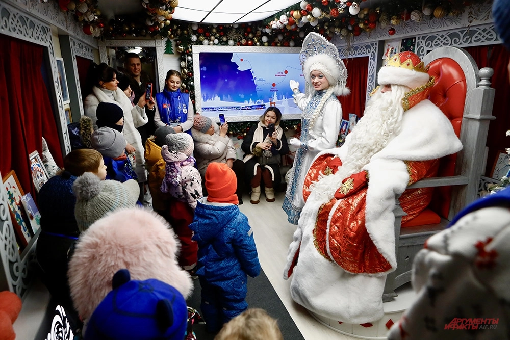 Вообще, поезд выехал из Великого Устюга 19 ноября и уже полтора месяца путешествует по всей стране. На Рождество он заедет в Питер, а потом отправится в Великий Устюг. К 11 января Дедушка должен быть дома.