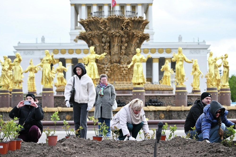 Участники субботника высаживают розы на территории парка ВДНХ в Москве. Фото: РИА Новости/ Кирилл Зыков