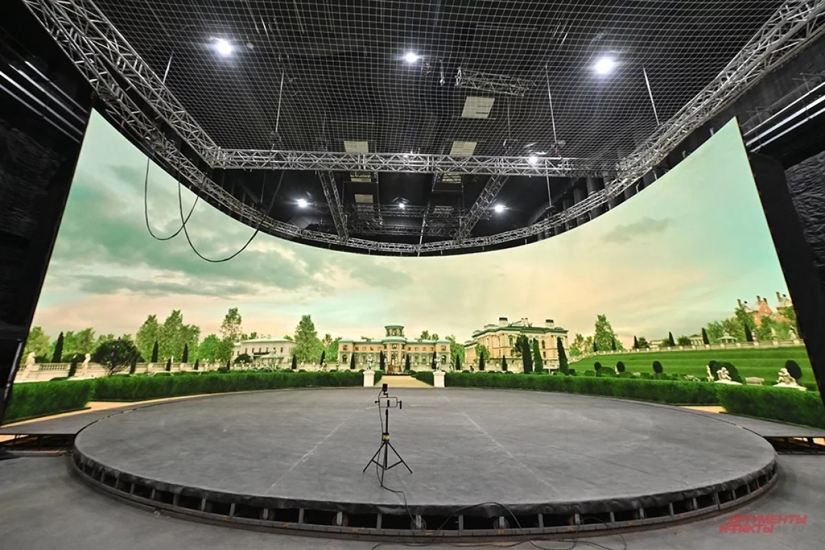 Съемки сериала ведутся сразу в нескольких павильонах киноконцерна. Пышные залы исторических дворцов, графские усыпальницы, будуары — все это декорации, выстроенные внутри помещений. Но один из павильонов кардинально отличается от других. Там не просто оживляют искусственные постройки, а объединяют виртуальный и реальный миры.