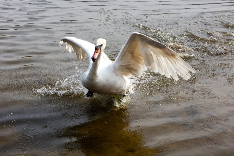 Лебеди ведут себя дружелюбно, спокойно подплывают к людям, но внутри их большой семьи тоже случаются «сцены» — особенно в период выведения потомства. В такие дни самцы становятся особенно строгими, защищая своих малышей от чужаков.