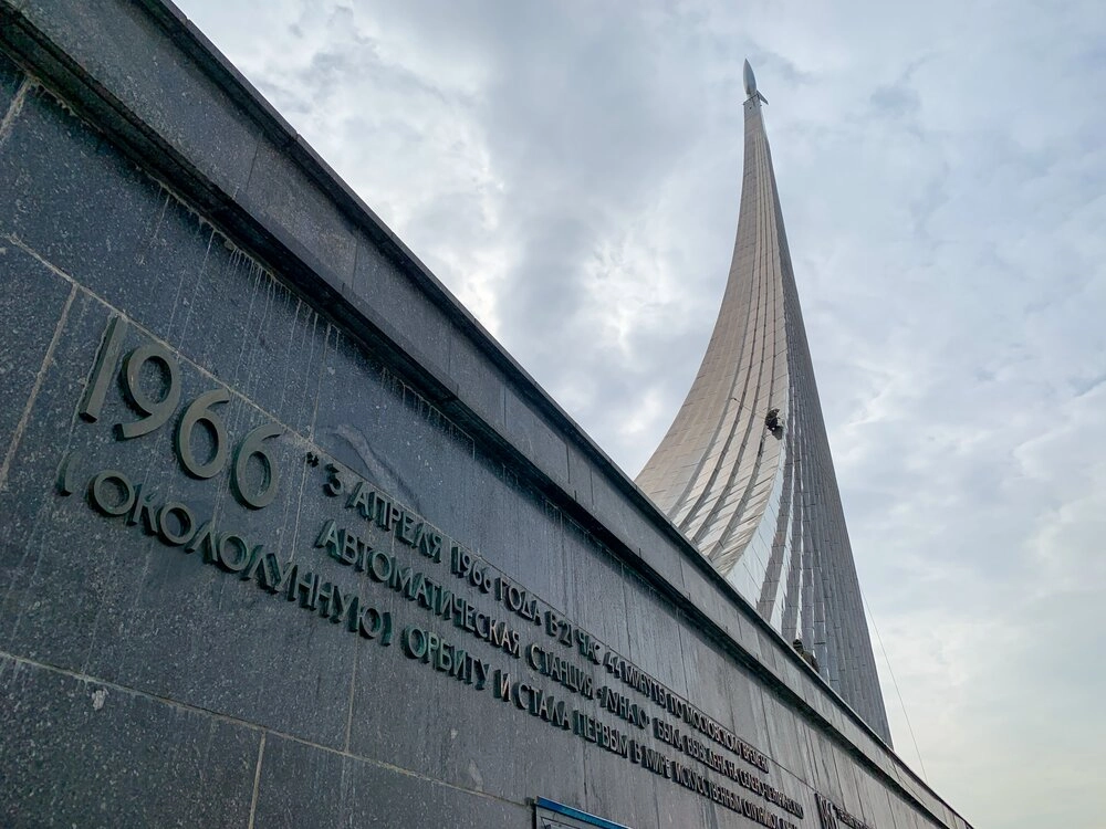Спустя семь лет после запуска первого искусственного спутника Земли на пустыре у главного входа на ВДНХ появился 110-метровый монумент, посвящённый достижениям советского народа в космической отрасли. Это 250-тонная стальная стела, облицованная титановыми корпусами, выполненная в виде шлейфа от ракеты, что установлена на верхушке памятника. Большую роль в создании монумента сыграл Сергей Королёв — советский учёный, конструктор ракетно-космических систем. Именно он добился того, чтобы облицовку памятника сделали из отполированных титановых пластин.