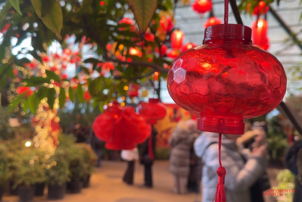 В Ботаническом саду МГУ «Аптекарский огород» проходит масштабный фестиваль, посвящённый китайскому Новому году — Чуньцзе, или Празднику весны. Субтропическая оранжерея преобразилась: пространство украсили сотни красных фонариков, гирлянды, парящие драконы и сияющее дерево, прикосновение к которому, по легенде, приносит удачу.