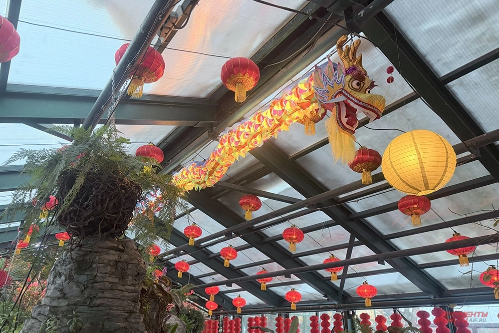 О символике украшений рассказал aif.ru главный садовник «Аптекарского огорода» Антон Дубенюк. По его словам, две ключевые краски праздника — золотая и красная. Золото символизирует богатство, а красный цвет, по поверьям, отпугивает злых духов и неудачи. Именно поэтому в оформлении использованы красные фонарики, драконы и золотое «денежное» дерево.