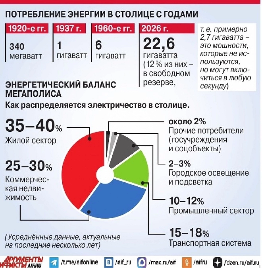 Рост потребления электроэнергии — маркер развития любого города. В Москве этот рост не прекращается последние несколько десятков лет, а недавно ещё ускорился за счёт запуска центров обработки данных и искусственного интеллекта. По оценке столичного мэра, к 2030 году столице потребуются дополнительные 4 гигаватта энергии. Из них чуть больше половины город получит после постройки новых и улучшения существующих линий электропередачи, которые перенаправят потоки из тех регионов страны, где вырабатывается больше энергии, чем потребляется: Смоленской, Тверской, Курской, Рязанской областей. Остальное Москва произведёт сама. В том числе за счёт новых энергоблоков на крупнейших электростанциях — ТЭЦ-26 и ТЭЦ-25, которые суммарно освещают и обогревают более 4 миллионов москвичей. Паросиловой и парогазовый блоки по планам будут запущены в конце 2028 года и добавят энергомощности города 500 мегаватт.