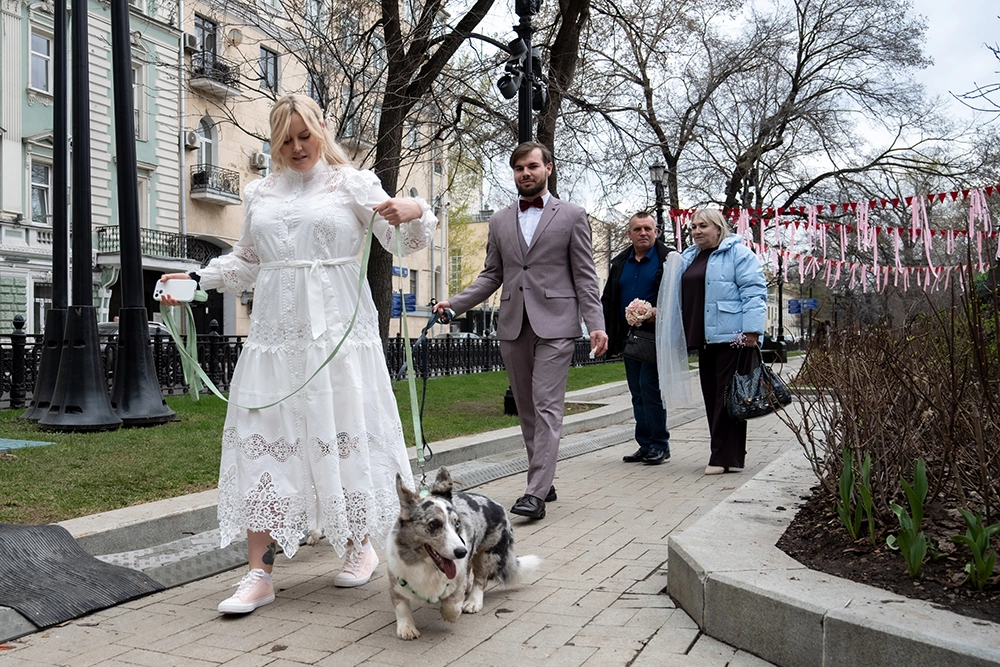 Открытие сезона ознаменовалось по-настоящему трогательным событием. 16 апреля торжество прошло прямо на Тверском бульваре, где счастливая пара — Татьяна и Кирилл — решила разделить один из самых важных дней в жизни со своими любимыми собаками: Адольфом и Джеком. Молодожены давно мечтали завести вельш-корги-кардигана, и присутствие любимцев на торжестве стало для них символичным. Праздник состоялся в рамках проекта «Моспитомец х Четвероногий друг» на фестивале «Пасхальный дар».