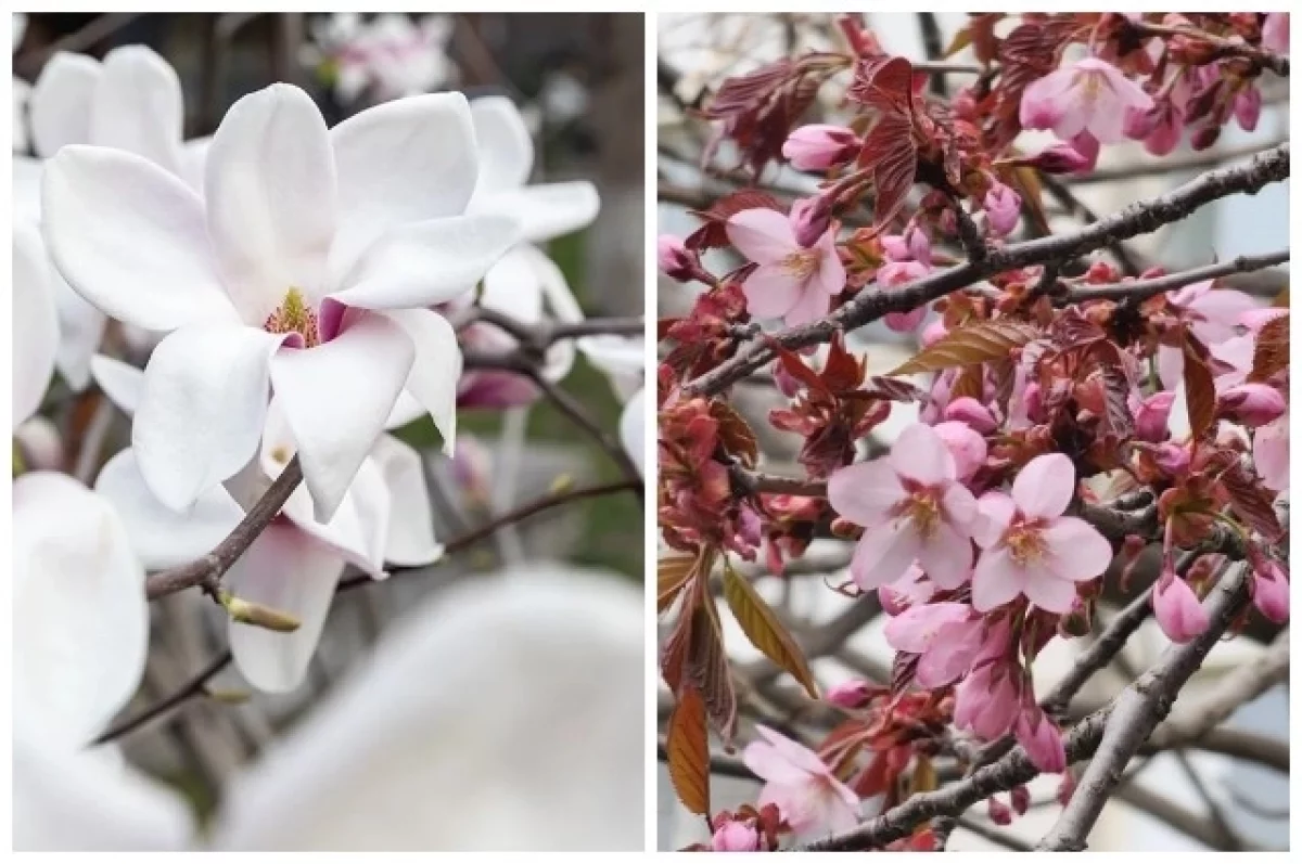 Магнолия и сакура к середине апреля уже показали бутоны.Коллаж АиФ