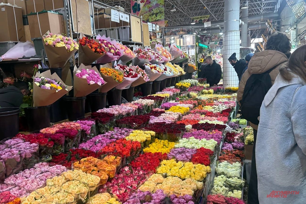 С первых минут становится ясно: праздник в разгаре! Рынок пестрит красками, гудит голосами и благоухает свежими бутонами. Людей много, но, как отмечают сами продавцы, это не сравнится с предпраздничной суетой Международного женского дня.