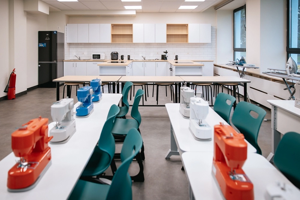 «Мы ушли от типовых предметных кабинетов и создаём два новых типа: универсальные и специализированные», — объясняет Иванцова. Библиотеки превратились в многофункциональные центры: там можно читать, проводить встречи, работать индивидуально или в группах. Входные группы стали комфортными для ожидания родителей. В рекреациях появились удобные подиумы для отдыха, а особая черта проекта — эксплуатируемые подоконники. «Это мечта многих школьников. Сегодня эта мечта реализована», — добавляет она.