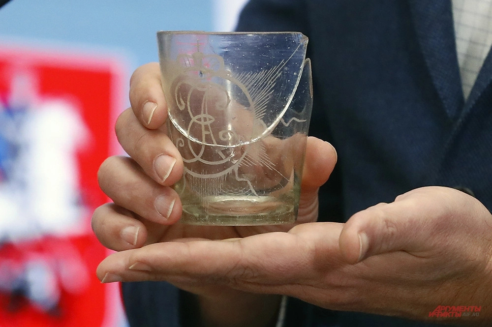 Самая редкая находка – стакан с монограммой императорской четы Александра I и Елизаветы Алексеевны. Стекло «дожило» до наших дней в неплохом состоянии. Фото: АиФ/ Игорь Харитонов