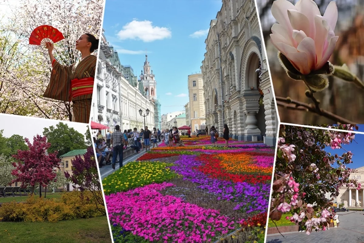 В апреле в столице уже можно увидеть первые яркие акценты. Распускаются крокусы, нарциссы, пролески, медуницы, ветреница лютичная. Чуть позже к ним присоединяются тюльпаны, сакура, магнолии и груши. К концу месяца появляются незабудки и маргаритки. В воздухе постепенно смешиваются ароматы черемухи, сирени и цветущих фруктовых деревьев. На одной клумбе могут одновременно сочетаться розовые, голубые и фиолетовые оттенки медуницы, а рядом — только начинающие раскрываться бутоны яблонь. Это делает каждую прогулку неповторимой, а фотографии — живыми и насыщенными.
