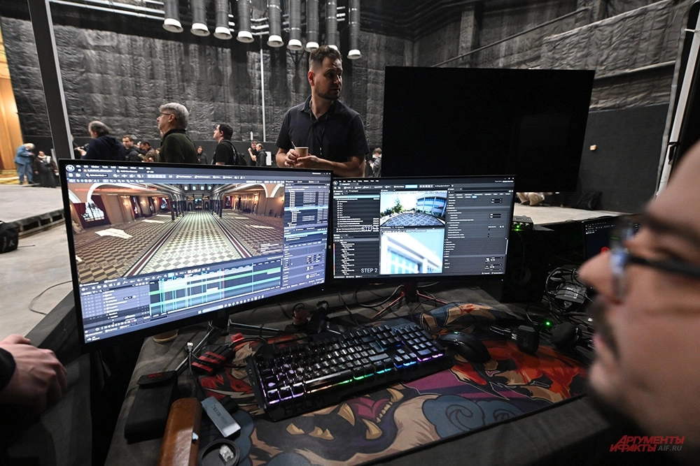 «На экраны выводится не просто картинка в графическом формате, а интерактивный фон. Он зависит от положения физической камеры. Во время съёмок на камеры крепится трекер, который реагирует на любой поворот или смену ракурса. И, соответственно, в зависимости от движения в кадре остаются все перспективы, а объекты смещаются относительно друг друга. Это создаёт у зрителя впечатление, что за ним не плоский экран, а продолжение 3D-мира», – добавляет генеральный директор студии виртуального продакшна Юрий Ярушников.