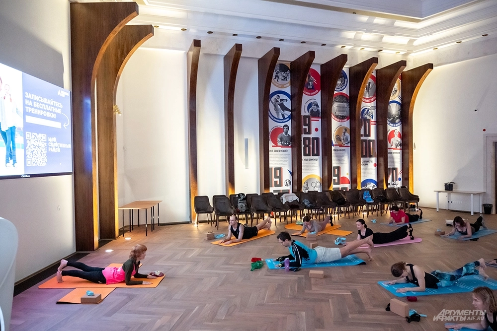 Что интересно: несмотря на то, что участников много, тренер подмечает малейшие ошибки, тут же поправляя ту или иную неточность в постановке тела. И в целом часовая тренировка превращается в увлекательное и вполне посильное исследование собственных физических возможностей. Добавим сюда приветливых администраторов, наличие ковриков, красивый исторический зал – и получается целостная картина очень уютной и атмосферной тренировки.