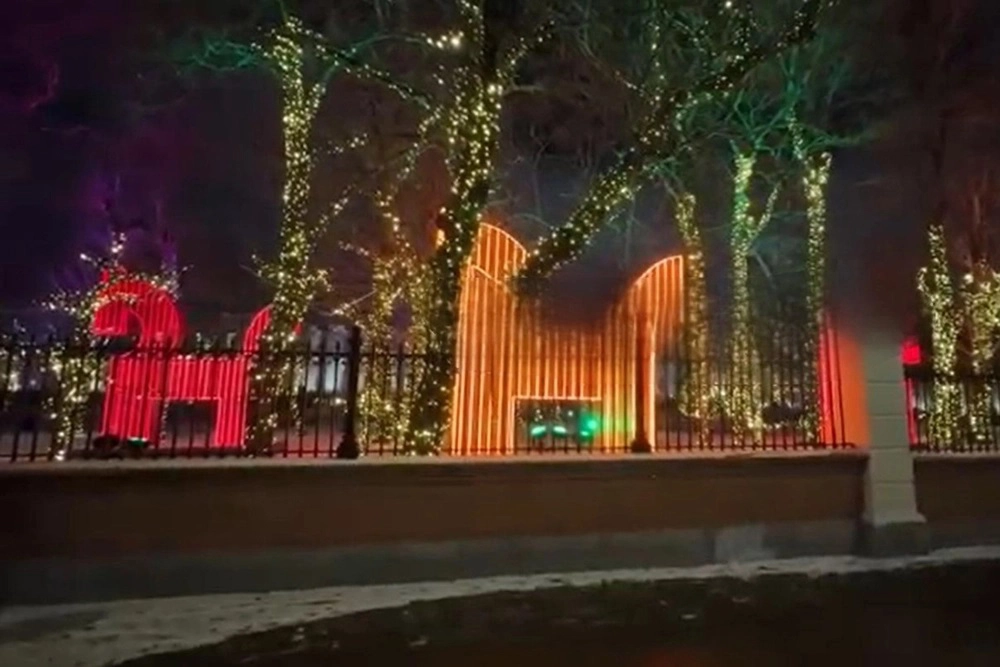 Главная новогодняя точка города. Здесь установлена 22-метровая ель, украшенная десятью тысячами игрушек и пятью километрами гирлянд. Дизайн разработан московскими художниками. Пространство вокруг превращено в световую сцену — идеально для фото и вечерних прогулок.