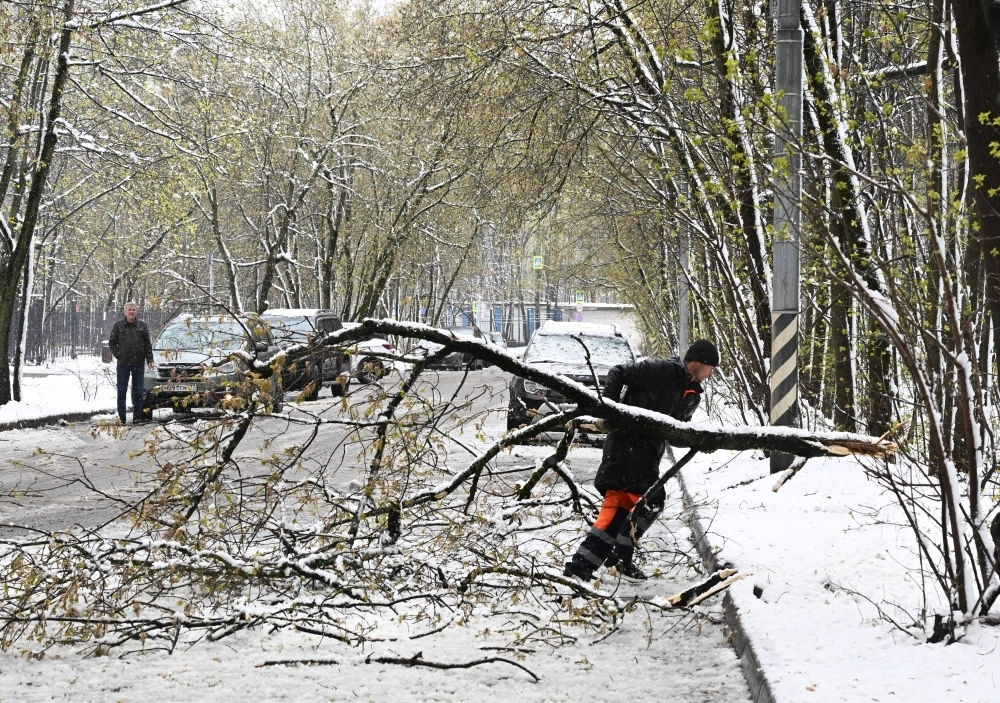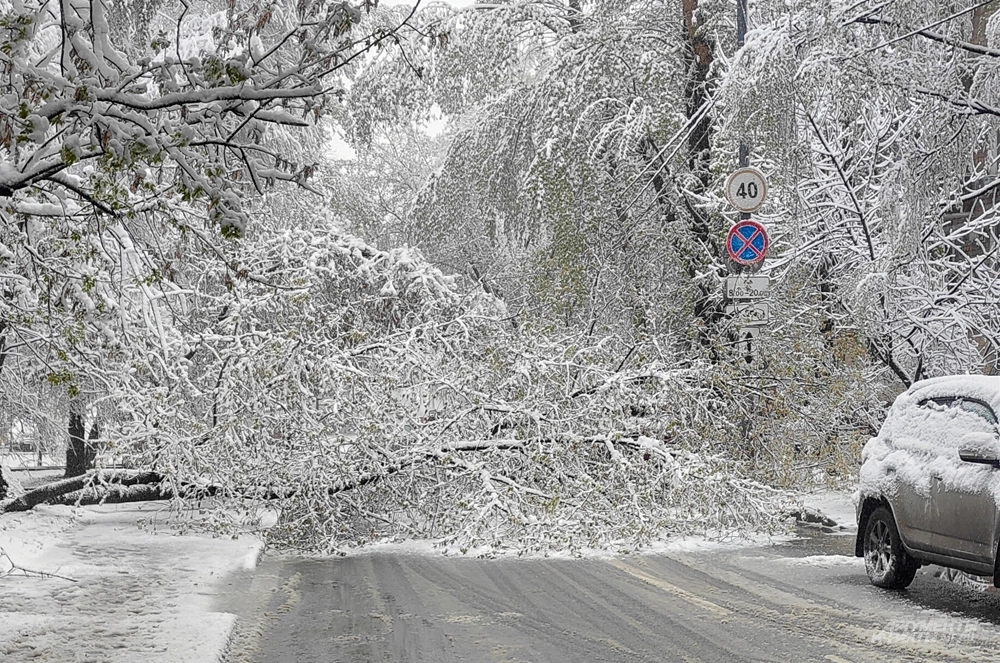 Тяжелый мокрый снег в сочетании со штормовым ветром уже привел к падению десятков деревьев и локальным обрывам линий электропередач.