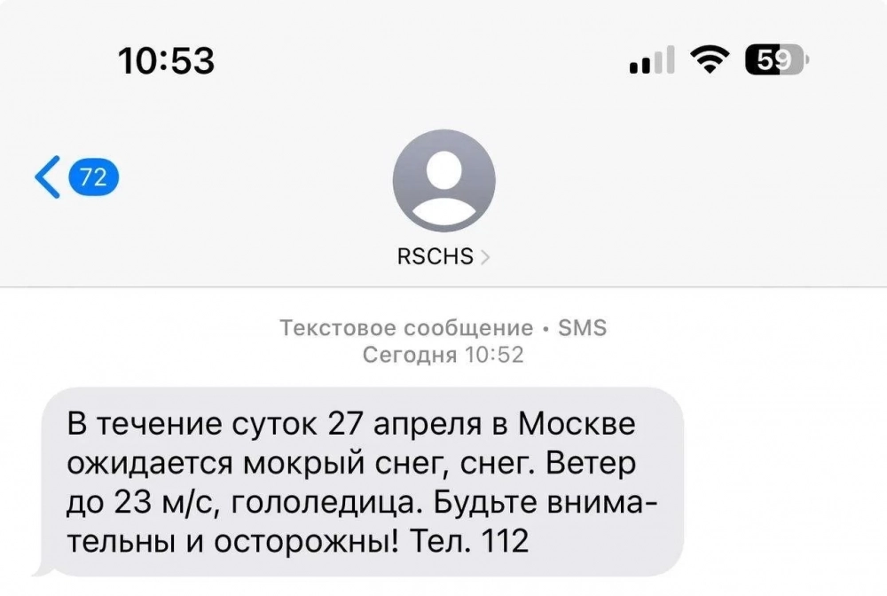 Синоптики предупреждают москвичей о резком ухудшении погоды в понедельник, 27 апреля. В течение дня в столице ожидается мокрый снег и дождь, а темпера e06 тура воздуха окажется на 5 градусов ниже климатической нормы — столбики термометров не поднимутся выше +3...+5 °С. Ситуацию осложнит штормовой ветер с порывами до 15–20 м/с и рекордно низкое атмосферное давление. На дорогах возможно образование временного снежного покрова и гололедицы.