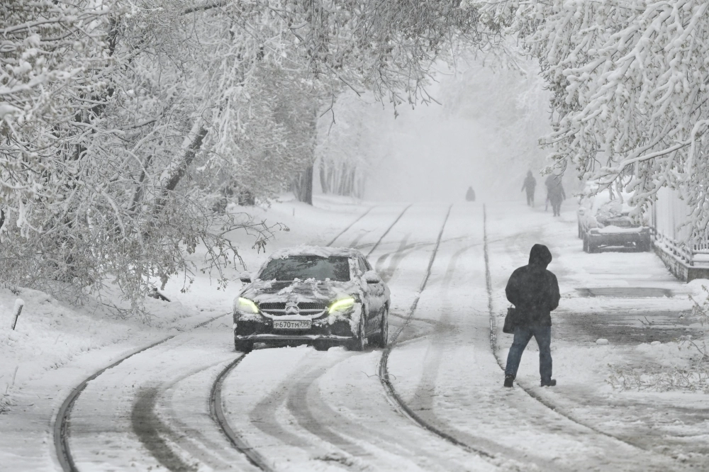 Зима вернулась: кадры заснеженной Москвы и последствия мощного циклона